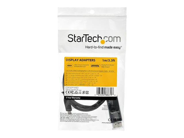 dubbelriktad vändbar videokabeladapter för DP till USB-C eller USB-C till DP - HBR2/HDR - USB Type C/TB3-skärmkabel - DisplayPort-kabel - USB-C (hane) till DisplayPort (hona) - USB 3.1 / Thunderbolt 3 / DisplayPort 1.2 - 1 m - stöd för 4K, aktiv - svart