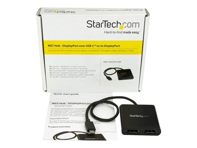 MST-hubb med 2 portar - DisplayPort-adapter - USB-C (hane) till DisplayPort (hona) - Displayport 1.2/Thunderbolt 3 - 38.6 m - USB-ström, 4K30 Hz (3840 x 2160) stöd, 2560 x 1600 (WQXGA)-stöd 60 Hz - svart - för P/N: BNDTB10GI, BNDTB210GSFP, BNDTB310GNDP, BNDTB410GSFP, BNDTB4M2E1, BNDTBUSB3142