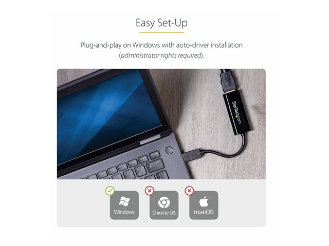 1080p (1920x1200) - Tunn/kompakt USB Type-A till HDMI-skärmadapterkonverterare - Externt video- och grafikkort - Svart - Endast Windows - Adapterkabel - TAA-kompatibel - USB typ A hane till HDMI hona - 19 cm - svart - stöd för 1080p - för P/N: HDDVIMM3, HDMM12, HDMM15, HDMM1MP, HDMM2MP, HDMM3, HDMM3MP, HDMM50A, HDMM6, HDPMM50
