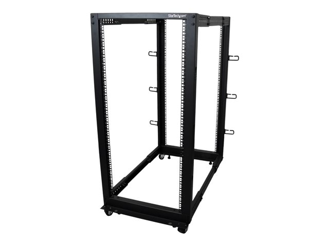4 stolpar justerbart djup (59 cm till 104 cm) rack för nätverksutrustning med hjul/nivåfötter/kabelhantering (4POSTRACK25U) - Rack öppen ram - svart - 25U - för P/N: CABSCREWM5B, CABSCREWSM5, CABSCREWSM5B, CABSCREWSM62, CABSCREWSM6B, CABSCRWS1224