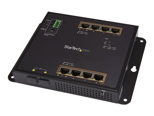 StarTech.com Industriell Gigabit PoE med 8 portar + switch med 2 SFP MSA-platser