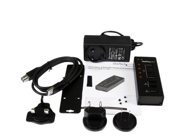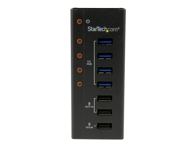 StarTech.com USB 3.0-hubb med 4 portar plus 3 dedicerade USB-laddningsportar (2x 1A & 1x 2A) – väggmonterbart metallhölje