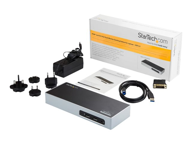 StarTech.com USB 3.0 Docking Station, Dual Monitor Laptop Docking Station with HDMI & DVI/VGA Video, 6-port USB 3.1 Gen 1 5Gbps Hub, GbE, Audio, Universal USB Type-A Dock, Windows & Mac