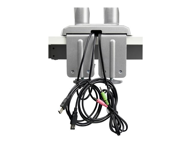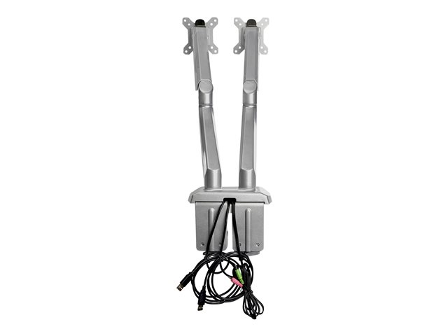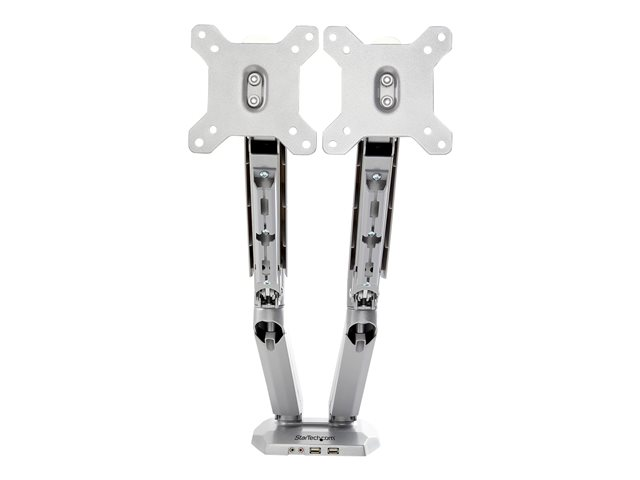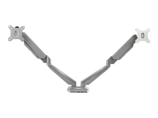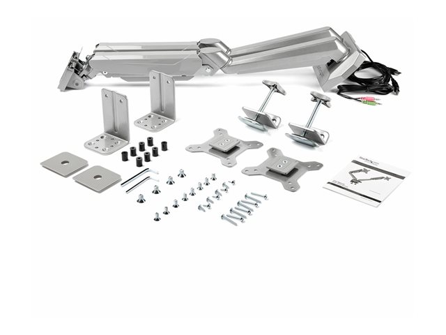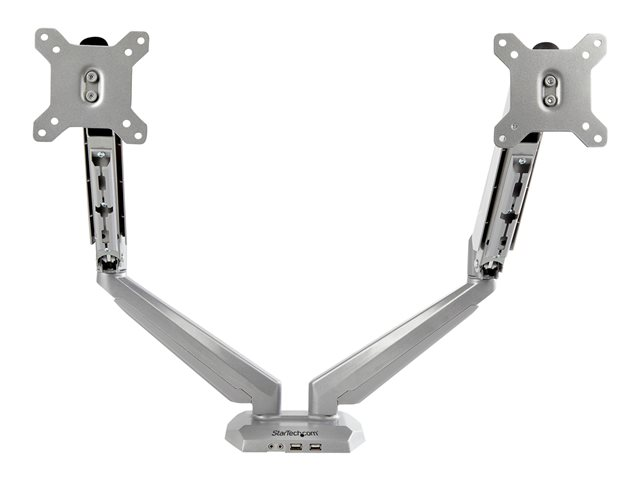 StarTech.com Desk Mount Dual Monitor Arm with USB & Audio, Grommet/Desk Clamp VESA Mount for up to 32 inch Displays, 2x USB, 2x 3.5mm audio, Ergonomic Full Motion Dual Monitor Arm, Silver