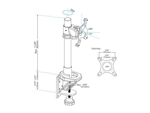 Adjustable - For up to 34" (30.9lb/14kg) Displays - Monteringssats - justerbar arm - för LCD-display - plast, stål - svart - skärmstorlek: 12"-24" - disk-monteringsbar - för P/N: ARMSTS, ARMSTSLG, STSCART