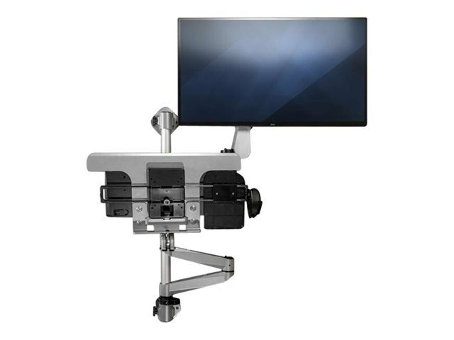 Foldable Standing Desk (WALLSTSI1) - Monteringssats (stång, mushållare, handledsstöd, fjäderarm, väggmonteringskonsol, tangentbordsfack, monitorfäste, väggmonteringsfäste med låsplatta, svängarm med logotyp, 2 st. svängarmar, musbord, musbricka, fast platta, EVA-musmatta) - för LCD-skärm/PC-utrustning - plast, aluminium, stål - silver - skärmstorlek: 13"-30" - väggmonterbar - TAA-kompatibel