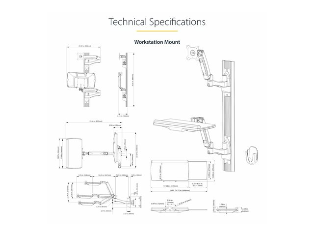 StarTech.com Wall Mount Workstation, VESA Mount For 32" Monitors (22lb/10kg), Fully Articulating Arms For Single Monitor Mount & Keyboard Tray, Includes Desktop Computer/PC Bracket
